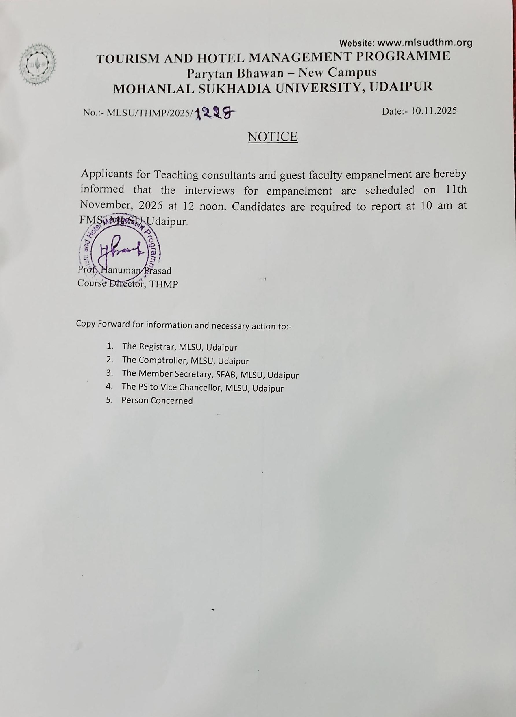 Interview of Empanelment of Guest Faculty DTHM,MLSU